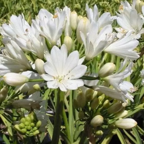 This is a miniature variety of Agapantus with double, pure white blooms. Its flowering spikes are about 20–30cm long. Its prolific blooms and compact size make it ideal for containers. Holds the RHS award for garden merit.