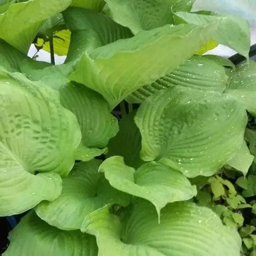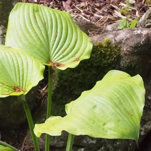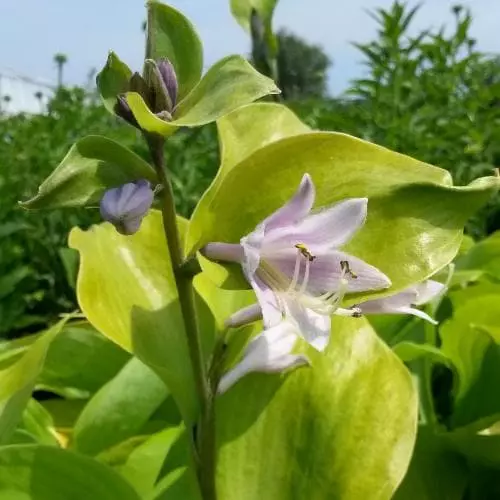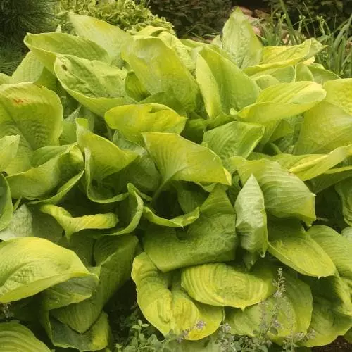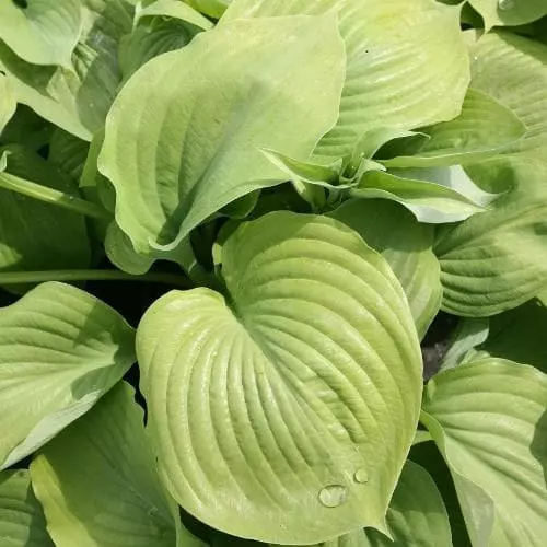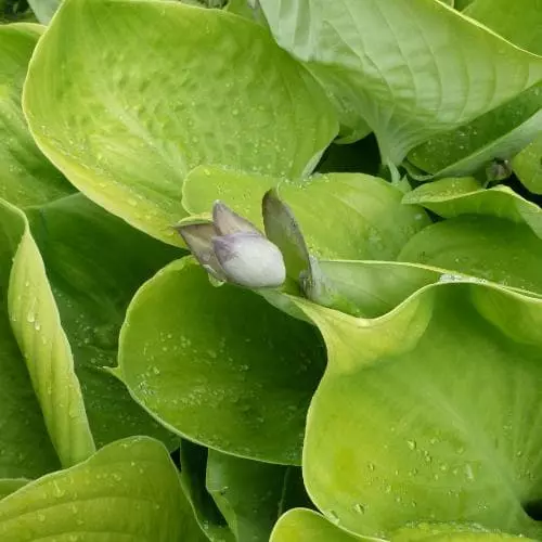 A magnificent hosta, and perhaps the largest of all, Hosta Sum and Substance, is a vigorous, clump-forming, herbaceous perennial grown for its big heart-shaped leaves, which light up a shady spot with a gorgeous splash of Chartreuse. The leaves are up to 20”/50cm long, a shining golden-green above and glaucous blue-grey below. In June and July, the lilac, bell-shaped flowers rise in dense racemes above the foliage. Hostas must have cool, deep, rich, reliably moist, acid to neutral soil to thrive, and also protection from slugs, which will shred their beautiful leaves if given half a chance. Plantain lily Sum and Substance holds the RHS Award of Garden Merit, and also looks lovely in a large container.