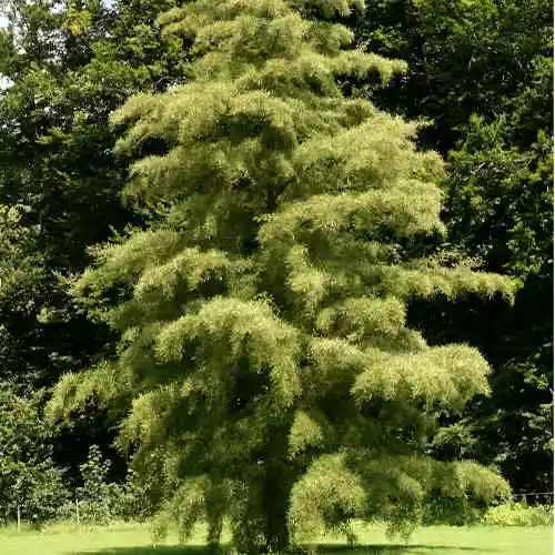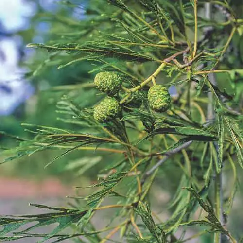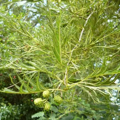 A pretty tree for gardens with poor, wet soil, Alnus glutinosa Imperialis is a small to medium-sized, very slow-growing, deciduous tree with an elegant, slender, conical habit. The green leaves are particularly beautiful, deeply cut, giving a delicate, feathery effect, turning yellow in autumn. In early spring, purplish-brown male catkins dangle from the tree; the female flowers are insignificant, and are followed by little brown, cone-like fruits, attractive to birds. Alders are able to produce nitrogens from bacteria in nodules on their roots, and can tolerate wet soil. Alder Imperialis holds the RHS Award of Garden Merit.