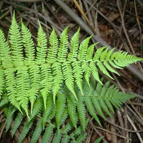 A native Irish fern, Athyrium filix-femina is a large, deciduous, shuttlecock fern with an elegant, upright habit and pale green, arching leaves. Similar to the male fern, but more delicate in appearance – a particularly graceful fern. Needs a moist, though not waterlogged soil, and will thrive near water. An exceptionally hardy fern, the lady fern’s fronds die down with the first frosts; leave the foliage on to protect the crown in exceptionally cold areas. Holds the RHS Award of Garden Merit.
