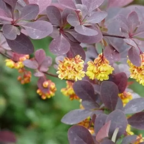 A low growing and compact form of Berberis thunbergii Atropurpurea with the same bronzy foliage and red autumn colour. Sparse yellow flowers appear in May and sometime produces small ovoid red berries in autumn. This is a low growing and tough shrub that offers good foliage colour throughout the summer and will grow in almost any spot.