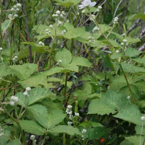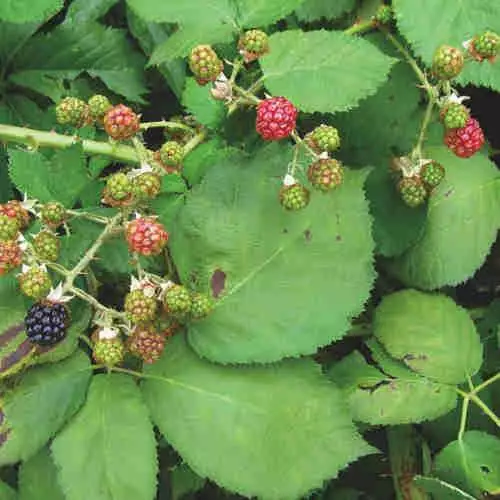 A hugely productive, late-fruiting blackberry, Rubus armeniacus Himalayan Giant is a monster of a plant, and suitable for only the largest gardens. It’s a rambling, very thorny, exceptionally vigorous, deciduous shrub, producing very long canes which need strong supports, but is ideal for making a fruiting windbreak or barrier along a boundary, where it will deter livestock and trespassers alike! Blackberry Himalayan Giant bears enormous crops on canes in their second year, up to 25lb/11kg from a single plant. The fruit is medium-sized, reddish-black and slightly acid, better for culinary rather than dessert use.