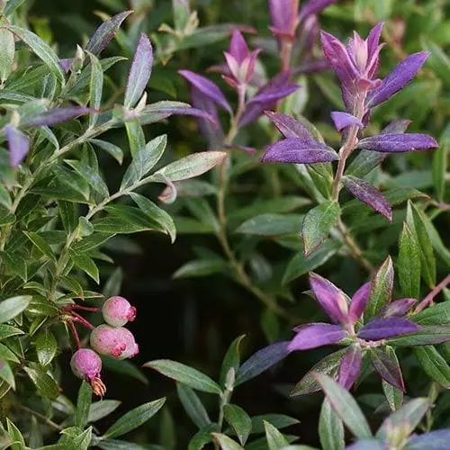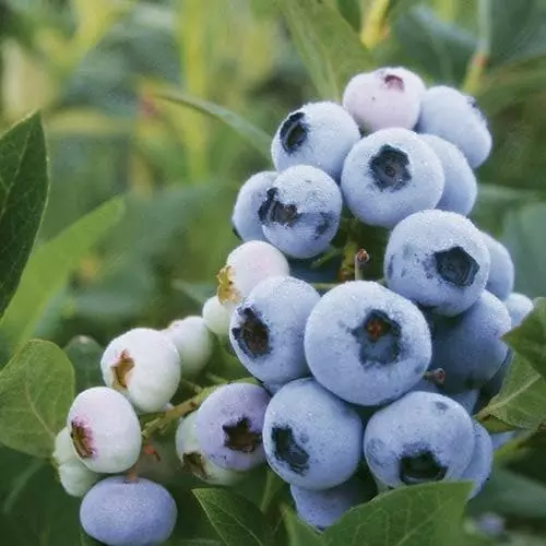 Vaccinium corymbosum darrow was intoduced in 1965 by Bill Darrow of Green Mountain Orchards in Vermont, Darrow is a strong evergreen shrub 5-6 ft tall, sometimes more. The leaves turn brilliant red in autumn. The urn-shaped flowers are pinkish-white, appearing in spring, and are they mature into very large, sweet to tart berries in mid to late summer. Darrow’s blueberry is a good choice for a naturalistic planting in very acid soils, and will tolerate soils which are seasonally wet. Can be grown in a container in ericaceous compost.
