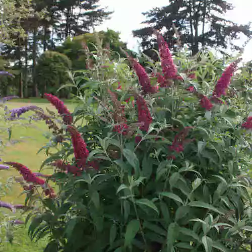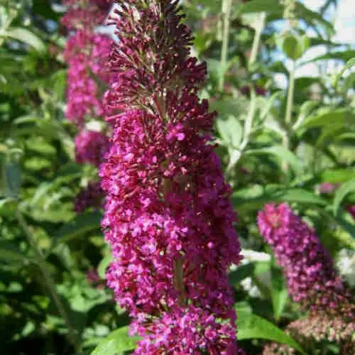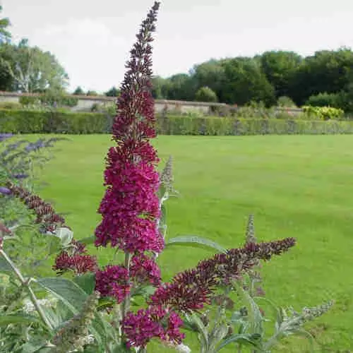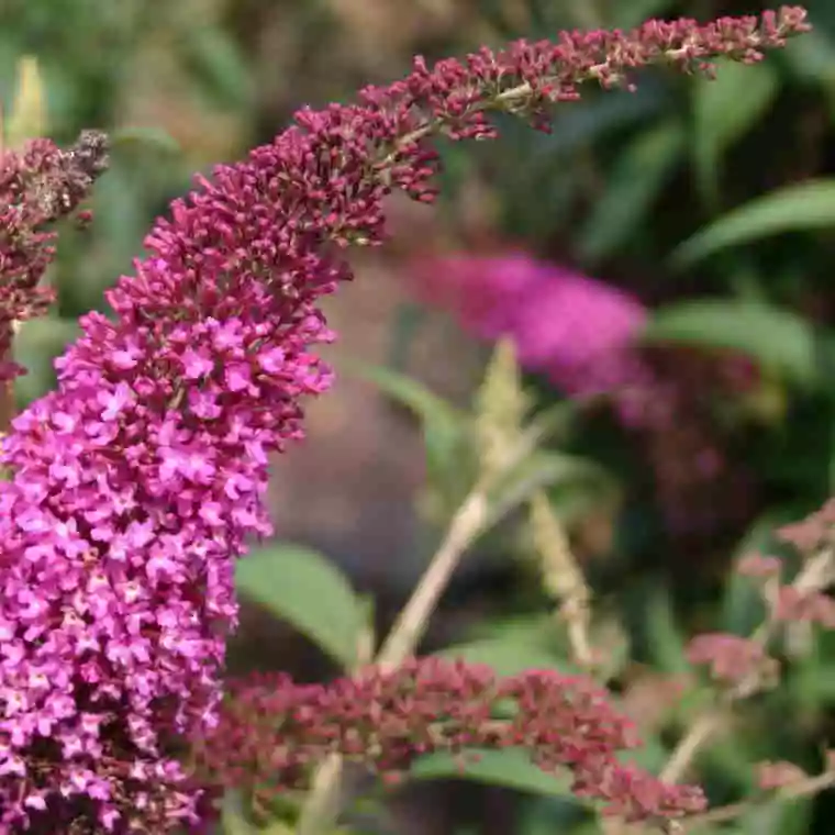 A Dutch-bred cultivar, Buddleja davidii Summer Beauty is a medium-sized, fast-growing deciduous shrub with an upright, arching habit, well known for attracting butterflies and bees. The long, lance-shaped leaves are silvery grey-green. The richly scented, nectar-rich flowers are deep rose-pink, borne in conical panicles 8”/20cm long. Dead-heading will encourage flowering into the autumn, although the first flush, in July, is the best. Butterfly bush Summer Beauty is a very good, adaptable, easy plant, ideal for the back of the border, and can be cut back hard in early spring if necessary; the plant will still flower, but later, which is better for the butterflies!