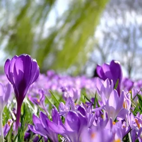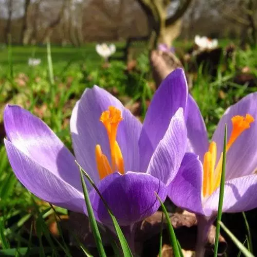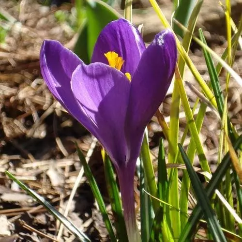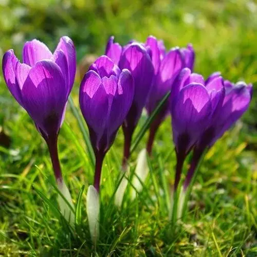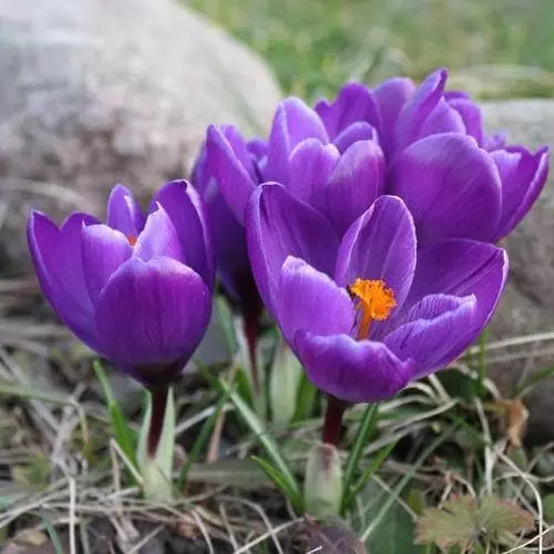 A very deep purple flower with bright orange stamens and stigma this large flowered crocus gives a great contrast in mixed plantings or a bright splash of colour on its own. Bees and other pollinators will love this early flower.