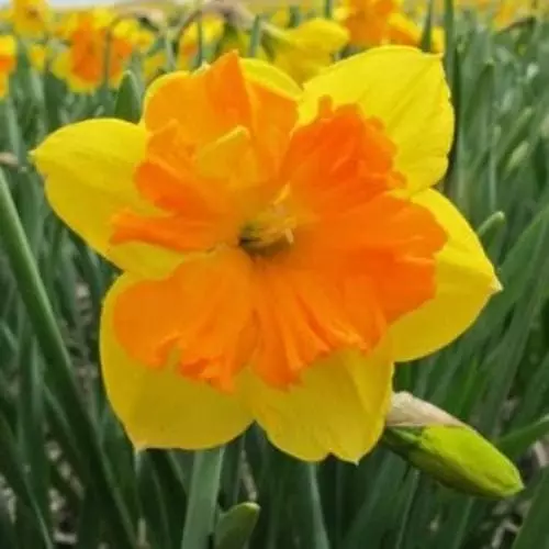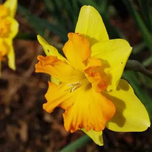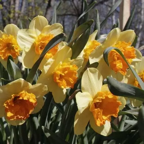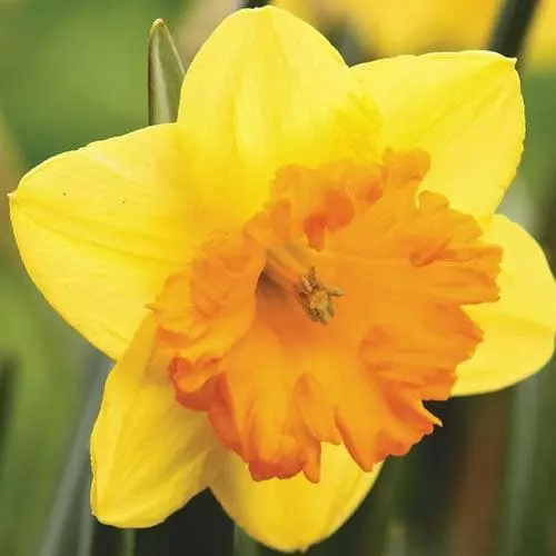 The large flowers of Narcissus Congress have a lemon-yellow outer disc of petals which contrast beautifully with a divided and fluted trumpet of deep yellow, shading out to orange. An excellent cut flower. The bulbs will naturalise well in sun or partial shade and will flower throughout the month of March.