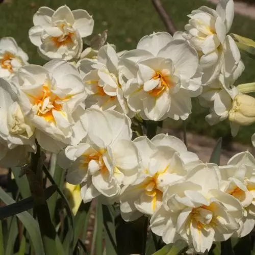 Sir Winston Churchill is a scented double daffodil with stems to 40cm bearing several fragrant creamy-white flowers with orange segments on each stem. An excellent daffodils for growing in containers or for using as a cut flower.