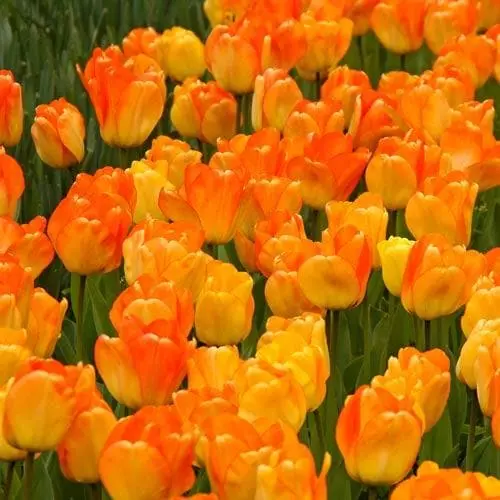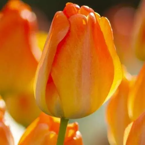 Soft, lemon-yellow buds of Tulipa ‘Day Dream’ become tinged with delicate shades of apricot. The huge blooms open to reveal a bright orange interior shading back to yellow at the base. One of the strongest and easiest tulips to grow, sweetly fragrant Tulip ‘Day Dream’ holds an ‘RHS Garden of Merit’ award. Blooming through the month of April, it is extremely versatile and sturdy, thriving in full sun or partial shade. It grows well in containers or borders and can be naturalised. It makes wonderful, long-lasting cut flowers.