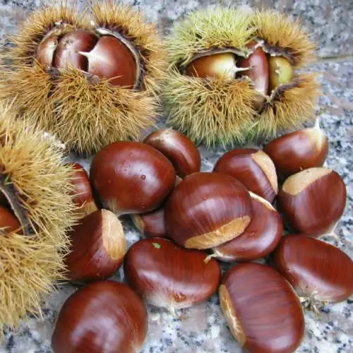An early to mid-season French chestnut widely grown in north-west France, Sweet Chestnut Bouche de Bétizac is well adapted to the moist Irish climate. Vigorous, hybrid variety, giving good crops of medium-sized nuts. Fruits at 5-6 years-old. Very disease-resistant. Needs a pollination partner, unless you have a European sweet chestnut nearby. Do not plant in a frost pocket.