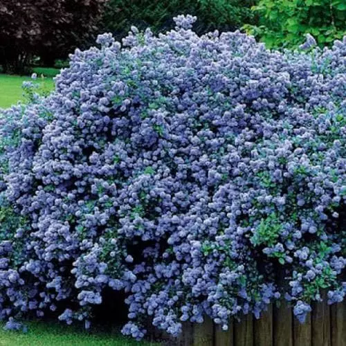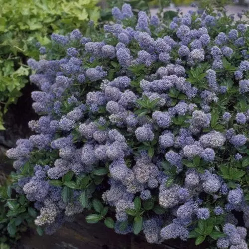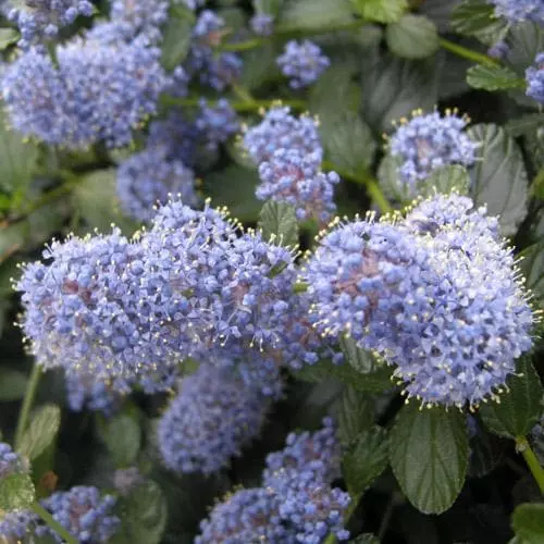 Early summer-flowering Ceanothus thyrsiflorus repens is a vigorous, low-growing, medium-sized evergreen shrub with a dense, spreading, mound-forming habit, but will grow much taller if wall-trained. The leaves are small, glossy and deep-green, and in May and June masses of powder-blue flower-spikes cover the plant. Â Does not need much, if any pruning. Also known as creeping blue blossom, it needs a sunny, warm spot sheltered from cold, drying winds, preferably against a warm wall. Although fairly lime-tolerant, it may develop chlorosis on thin chalky soils. Creeping Californian lilac holds the RHS Award of Garden Merit.