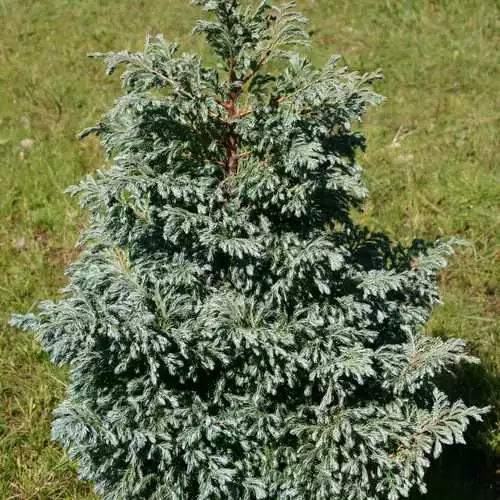 A small and slow growing stout conifer, Chamaecyparis pisifera Boulevard forms a stout bushy shape and carries silvery blue leaves that are soft to touch. The colour tends to put on a better show when planted in rich soil and pruned lightly each year. This variety is ideal for specimen planting in rock and heather gardens adding all year round colour. It could also work in a large pot or half barrel on a patio.