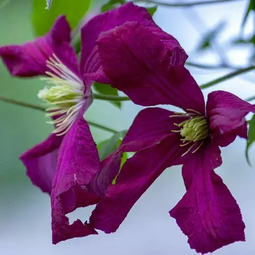 A really outstanding, large-flowered clematis, Clematis Polish Spirit is a vigorous, deciduous, self-clinging, herbaceous perennial climber, beautiful over an arbour or pergola, or encouraged through a tree. Three-part, typical clematis leaves are mid-green, persisting in good condition throughout the season. Large, four- to six-petalled rich purple-blue flowers with creamy stamens are borne prolifically from July to September. A Group 3 viticella-type clematis, it’s very easily pruned: simply cut right back to two fat buds 6-8”/15-20cm above the ground in late February or early March. Clematis like a cool, spacious root-run, so place flag-stones over the roots, or a rich mulch in spring. Resistant to clematis wilt, clematis Polish Spirit holds the RHS Award of Garden Merit.