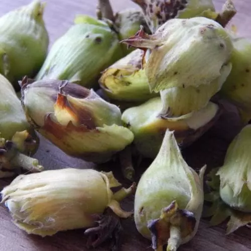 Pollination: Partially self-fertile, but will crop better grouped with at least one different pollination partner; wild hazel may also pollinate