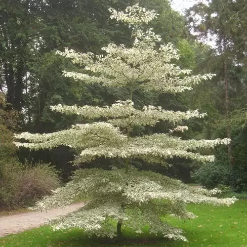 A beautiful addition to any garden, this slow growing deciduous tree boasts beautiful, elegantly layered horizontal branches, which will bear clusters of small white flowers in summer. Creamy-white variegated leaves turning yellow in autumn. Perfect specimen tree to show off in any garden.