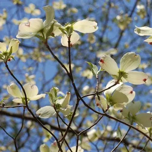 Sometimes referred to as the most spectacular small flowering tree. Noted for its white-pink flowers in late Spring, scarlet-red fruits, amazing autumn color, brown bark, and layered branches. Great tree for a smaller garden, though equally apt for larger gardens.Â