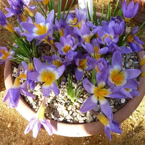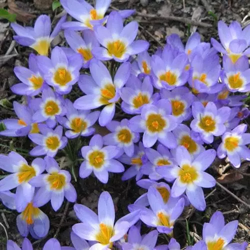 A gorgeous small flowered crocus unusual in its colouring of purple going to white with a vibrant yellow centre a cheerful addition to any garden a great performer that will naturalise in your garden over time. Ideal planted in low bowls to enjoy up close. Good for bees and other early pollinators.
