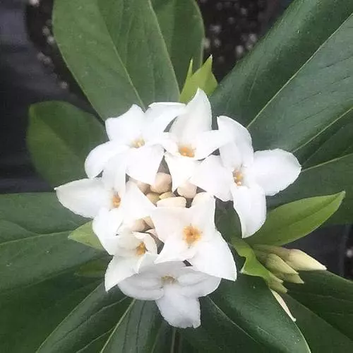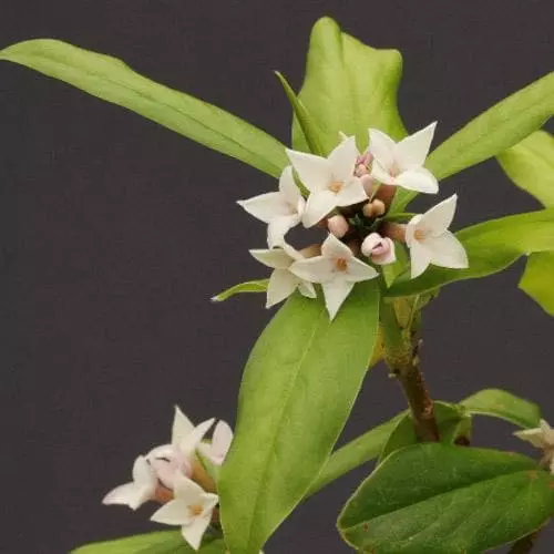 A choice hybrid between Daphne bholua Jacqueline Postill and Daphne acutiloba Fragrant Cloud, Daphne x Spring Herald is more compact and rounded than the former and larger than the latter. A small to medium-sized, slow-growing, semi-evergreen shrub with lance-shaped, glossy, deep green leaves, it produces terminal clusters of wonderfully scented flowers over a long period from late winter; they are pale pink in bud and pure white within, sometimes with a touch of cherry-red at the base of the petals. Daphne Spring Herald is great in a winter border, or planted by a path or near a window where the scent can be appreciated indoors on mild days. Be aware that all parts of the plant are toxic if eaten, and the sap is an irritant.