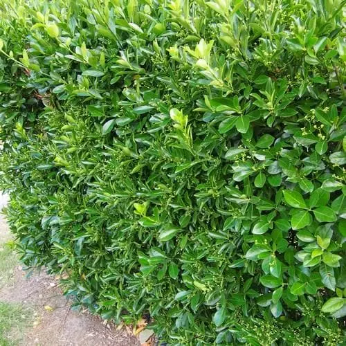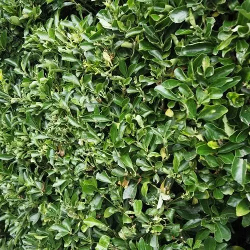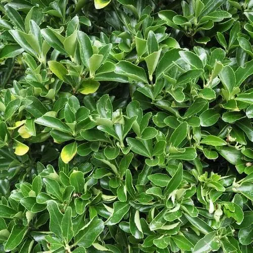 Often used for coastal hedging, Euonymus japonicus is an evergreen large shrub or small tree with a dense, upright habit. Glossy, oval, deep green leaves with serrated margins. Inconspicuous greenish-white flowers, with a slight vinegar scent, appear in late spring, and are followed in autumn by deep pink fruits which split to reveal orange seeds. One of the toughest seaside hedges , it responds very well to being clipped.