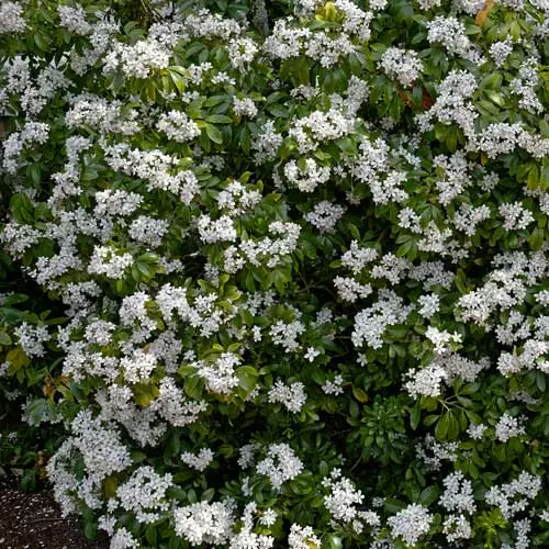 Easy, reliable, attractive and scented to boot, Choisya Ternata Aztec Pearl earns its place in almost any garden. It’s a medium-sized, fast-growing, evergreen shrub with a neat, open, mounded habit. The leaves are divided into 3-5 narrow leaflets, and a glossy deep-green, deliciously scented of orange-blossom. In May, it bears citrus-scented white flowers tinged with pink, and will often flower again in late summer, especially in a hot year. Flowers best in full sun. Good as a hedge or a border specimen, Mexican orange blossom Aztec Pearl holds the RHS Award of Garden Merit. Attractive to bees.