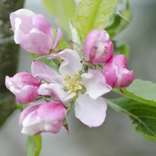 An old cider apple, discovered in Somerset in the mid-19th century.  The apples are small, yellow, striped with red, the flavour is mild and bitter-sharp, best mixed with other varieties when making cider. Apple Camelot is a fairly vigorous tree, very healthy, with particularly good scab resistance, so particularly suitable for organic growing. Partial tip-bearer, so can’t be used for trained forms. Attractive pink blossom. Can also be used as a cooking apple, producing a sharp, yellow purée and making excellent apple-sauce.