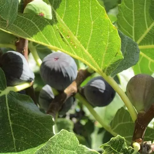 Named for its deep violet, almost black fruit, Ficus carica Violette de Sollies is a vigorous, spreading, deciduous tree with smooth, grey bark and beautiful, light green, five-lobed leaves. The fruit is large, with deep red flesh and an excellent, scented, very sweet flavour, and will need protection from birds if the tree is grown outside. Fig Violette de Sollies will grow very large unless its roots are confined, but it does well in a large container in a greenhouse or polytunnel. In warmer areas it can be fan-trained against a warm wall. In warmer climates figs produce two crops a year, but only one here; any small figs left on the tree should be removed in autumn, as they will not ripen. Keep well watered while the fruit is ripening. Be aware that fig sap can react with sunshine to irritate the skin. Â
