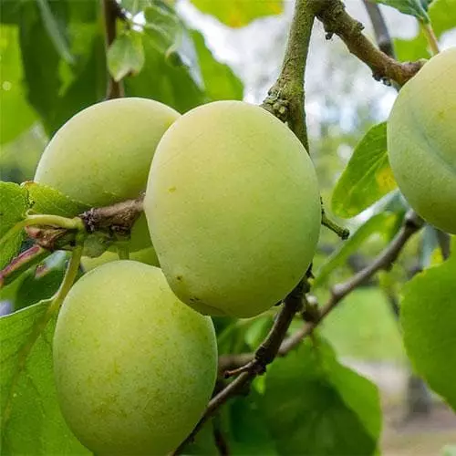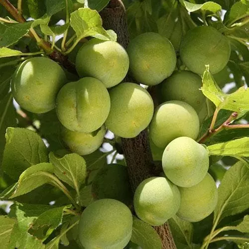 Greengages have been grown in France since the Middle Ages, and are known there as ‘Reines Claudes’. Prunus domestica Old Green Gage has probably the best flavour of any plum. The fruits are small, round, and a rather dull green, sometimes yellowish when ripe, but the greenish-yellow flesh is melting, very juicy, with a rich, sweet, delectable flavour. Not a heavy cropper, and with rather poor disease-resistance, it needs very warm, sheltered conditions to thrive, and may do best fan-trained against a warm wall. As plums have a short flowering season, choose another group 3 plum to pollinate its lovely white blossom. Prune if necessary (plums tolerate a quite crowded crown) but only in summer.