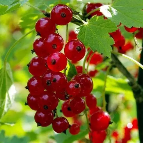 A very popular mid-season variety of redcurrant, ‘Red Lake’ is a fairly vigorous, medium-sized, upright bush which gives very reliable, heavy crops of very large, well-flavoured, juicy berries carried on long ‘strings’, which makes them very easy to pick. Don’t plant in a frost pocket, as it flowers early in the year. Good disease resistance. Redcurrant ‘Red Lake’  has been given the RHS Award of Garden Merit.
