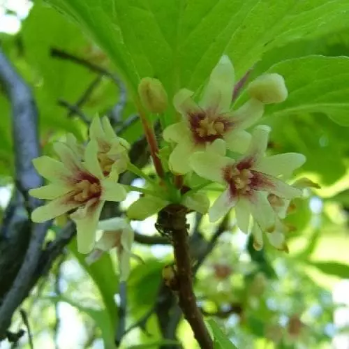 A medicinal plant from Northern China, Schisandra chinensis is also called Five-Flavour Berry from its odd taste, which combines sweet, salty, bitter, sour and spicy. The berries are said to be anti-inflammatory, adaptogenic and rich in anti-oxidants and are used in traditional medicine to fight ageing and fatigue. Magnolia berry is a hardy, deciduous, woody vine growing at a moderate rate to 30’/ 9m. It thrives in partial shade and humus-rich soil, and is thus ideal as a crop for forest gardening. The leaves are mid-green, almost heart-shaped and in groups of three. Small, fragrant flowers appear in spring, followed by clusters of brilliant red berries.Â