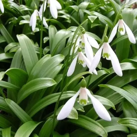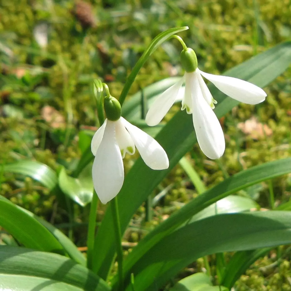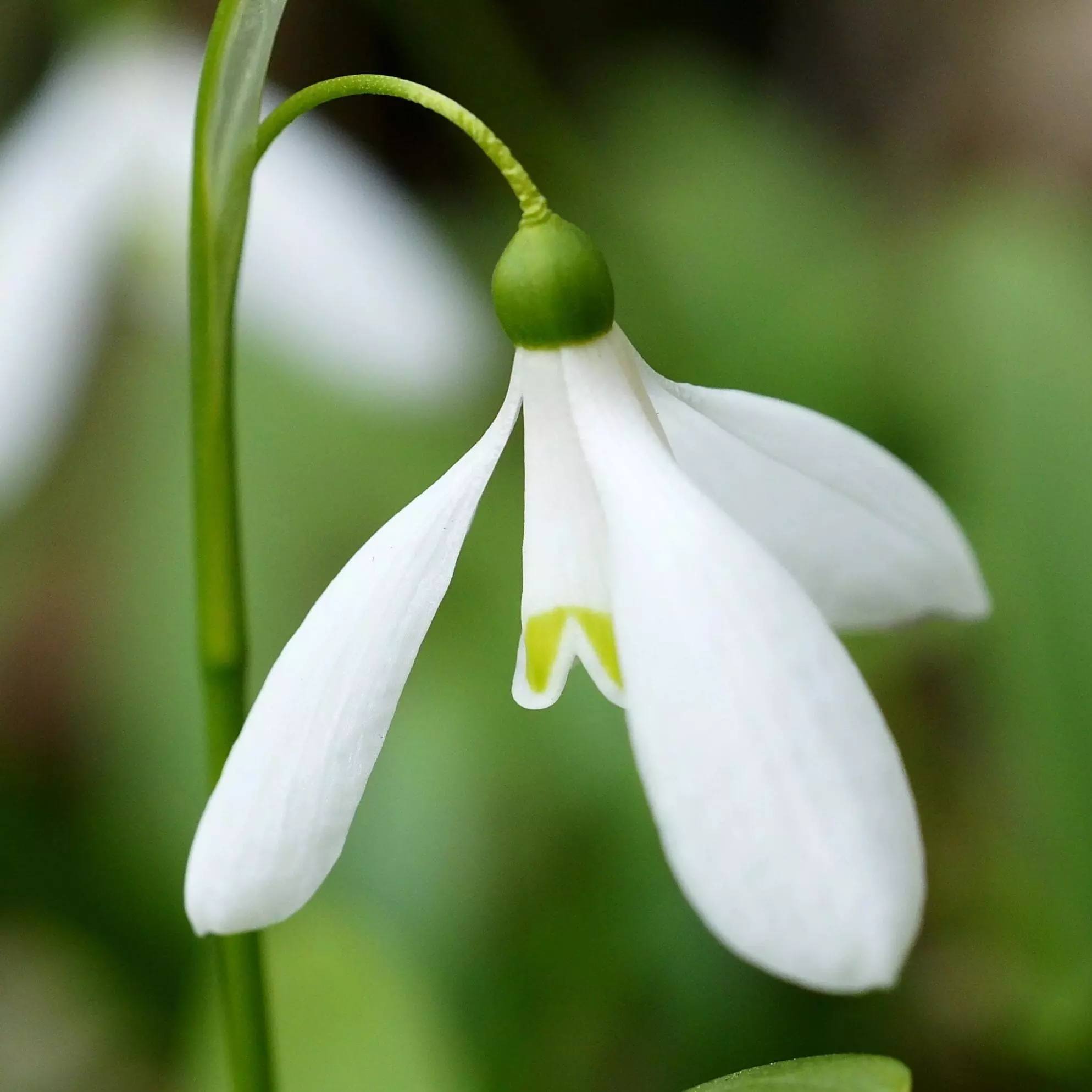 Many of you will be familiar with our commonest snowdrop, Galanthus nivalis, but you may not know Galanthus woronowii, a shorter specimen with shinier, broader green leaves and beautiful pearl-drop flowers that hang down at a slight angle, the inner segments have green horseshoe-shaped mark near the tips. This bulbous perennial will eventually form large clumps. Flowers early. Excellent for bees and other pollinators. Holds the RHS Award of Garden Merit.