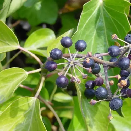 Irish or Atlantic Ivy is a native evergreen climber which clings by means of tiny stem roots to walls, trees and rocks and will also carpet the ground in shade and under trees and hedges. Yellow-green flowers appear in autumn and are attractive to bees, followed by black fruits which provide food for birds. Makes very effective, dense ground cover in most situations. Widely used for landscaping and is particularly valuable for difficult positions.