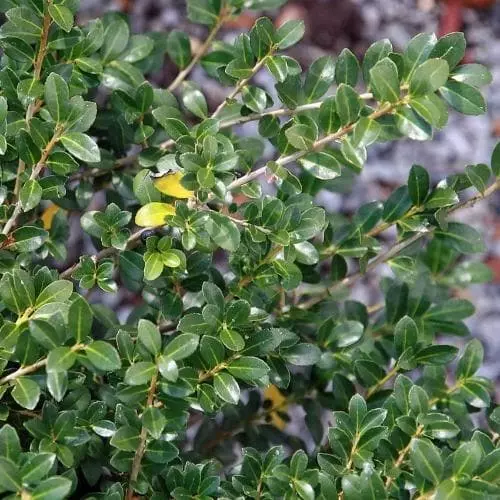 Japanese holly is often grown as a substitute for box in gardens which have suffered from box blight, as it tolerates hard clipping and is ideal for hedging and topiary. Ilex crenata Dark Green is a fairly slow-growing, robust, evergreen shrub or small tree, with an upright habit, ideal for hedging. The small, glossy leaves emerge light green, soon darkening to deep green. A few, insignificant, cream flowers are borne in May and June, followed by small black berries in autumn. Ilex crenata Dark Green is particularly good clipped as a dwarf hedge, and is also good in containers.