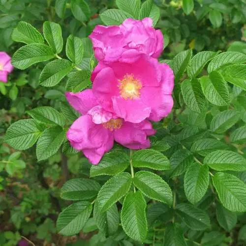 This hardy flowering Rose will grow where others will not. Rosa rugosa is considered a frontline coastal plant taking extreme coastal exposure. It makes a spiny deciduous bush with a suckering habit and creates a dense hedge quickly. Rosa rugosa has lovely soft pink, fragrant flowers in Spring that are followed by large edible Rosehips and the foliage turns shades of yellow and gold in a good Autumn.Â