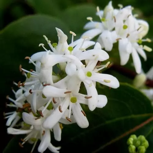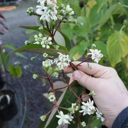 A member of the honeysuckle family and better known in North America, where it is sometimes called Crape Myrtle of the North, or Seven Son Flower. The scented, creamy white flowers fall with the first frosts but their calyxes remain, turning pink before darkening to burgundy. Butterflies love heptacodium almost as much as Buddleia.