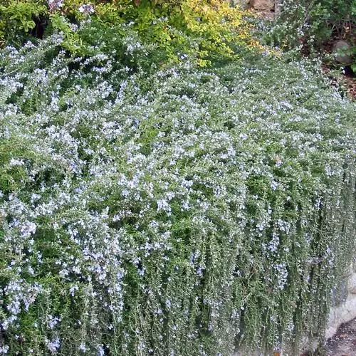 Prostrate form with light blue flowers which will trail over slopes and walls. It will also make attractive ground cover. The flowers are attractive to bees. Rosemarinus officinalis Prostratus can be cut and used in cooking. Needs full sun and very well drained soil to do well. Dislikes excessive winter wet. Best to cut Rosemary back regularly in spring to retain a bushy shape and prevent the plant becoming leggy. Tolerates salt very well.