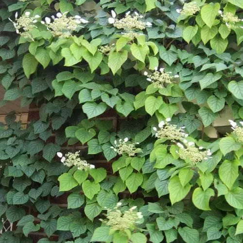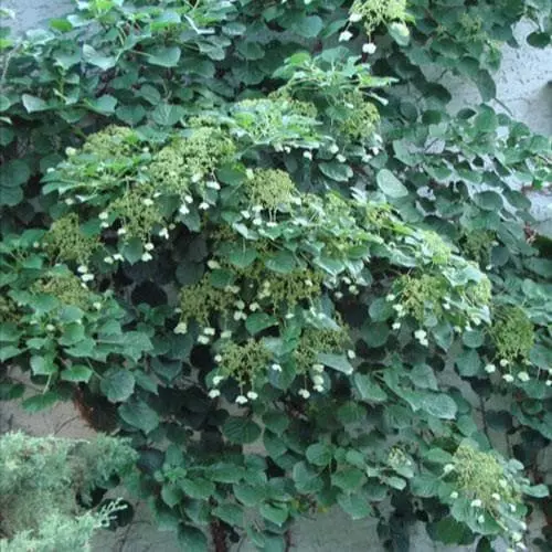 ‘Brookside Littleleaf’ is a vigorous, woody, semi-evergreen to evergreen climber with small, oval, deeply serrated, dark green leaves. Good for shade but will also grow in full sun. It bears broad, flattened clusters of lightly fragrant, white lace-cap flowers in summer.