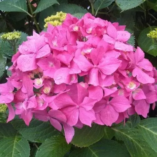 A very popular mophead hydrangea, Hydrangea macrophylla Bouquet Rose is a compact, deciduous shrub, with a rounded, spreading habit. The ovate leaves are mid-green. From June to September large candy-pink or purple-blue mopheads which fade to pink are borne on the shrub; the initial colour depends on the acidity (bluer) or alkalinity (pinker) of your soil. Hydrangea Bouquet Rose is small enough to be grown in a large container. Leave the dead heads on the shrub for frost protection, and prune back flowered stems to two healthy buds in late February. Must be watered in dry periods.