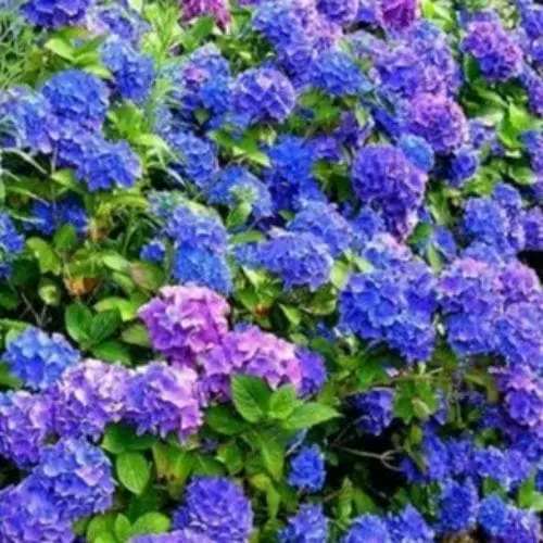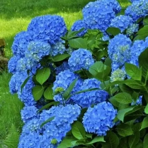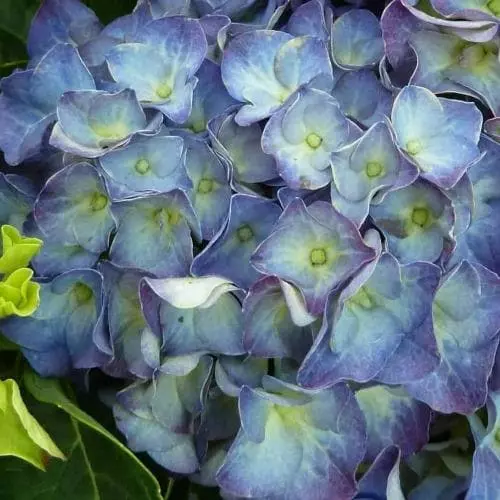 A compact mophead hydrangea with glorious deep blue colour, Hydrangea macrophylla Jip Blue is a deciduous shrub with an upright, bushy, rounded habit. The large, ovate, slightly toothed leaves are deep green, turning reddish purple in autumn. In the second half of summer and into autumn, deep blue, mophead flowers are borne in big rounded clusters. Hydrangea Jip Blue can also be grown in a container, particularly good in identical pots on a patio. Flowers may scorch in full sun, so the plant is best sited where it gets afternoon shade.