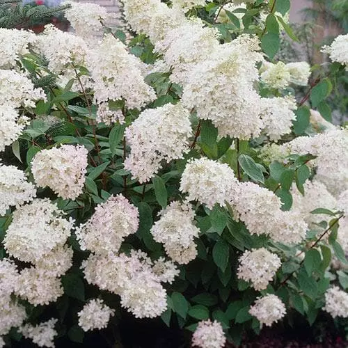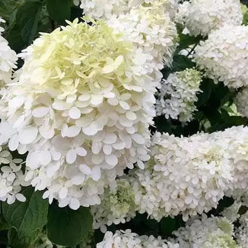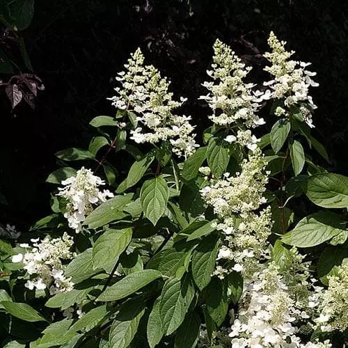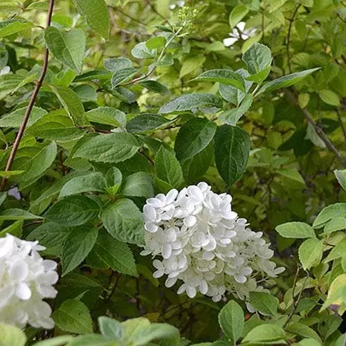 Grown for its impressive show of huge, conical flower-panicles in late summer and autumn, Hydrangea paniculata Grandiflora is a large, deciduous shrub with arching branches, not as fussy about acidic soil as most hydrangeas. The ovate, slightly toothed leaves are mid- to deep green, turning yellow in autumn. Cone-shaped clusters of fertile and infertile florets are borne from the end of July or beginning of August, and keep going well into autumn. These emerge creamy-white and mature to soft pink; they are good for pollinators, and when dried, make lovely winter flower-arrangements. Prune the flowered stems off to within a few buds of the woody framework in late February. Ideal for a shrub border in the larger garden, or will make a beautiful, informal, flowering hedge where there is space for it.