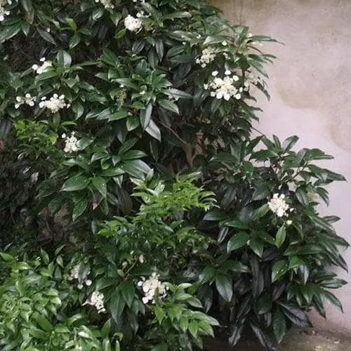 A smaller species of climbing hydrangea, originally from Mexico, Hydrangea seemannii is a slow-growing, self-clinging, evergreen climber, for year-round interest in the smaller, milder garden. The attractive leaves are deep green and leathery, and from June to August, the plant is covered with pretty, greenish-cream, domed, lacecap flowers 15cm across. Seemann’s Climbing Hydrangea will be happy on a north wall, lighting it up during its long flowering period. It is slow to establish at first, when it must not be allowed to dry out, but will grow moderately quickly thereafter. Only frost hardy, so only suitable for milder areas.