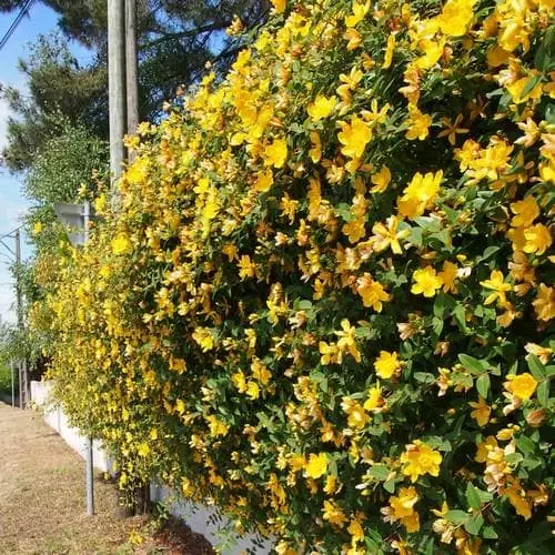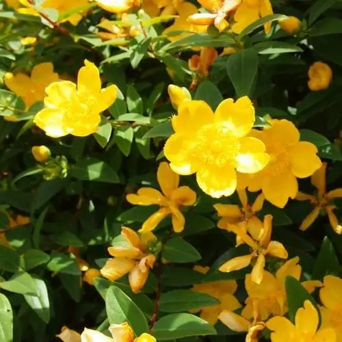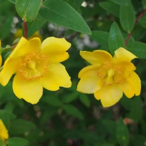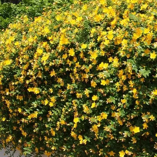 An excellent summer flowering shrub with large (3″) bright yellow flowers with orange anthers, making for an attractive low flowering hedge. This is a low-maintenance semi-evergreen shrub with neat oval green leaves which needs little or no regular pruning- if you do prune, do so in mid to late Spring. Hypericum Hidcote holds the RHS Award of Garden Merit.
