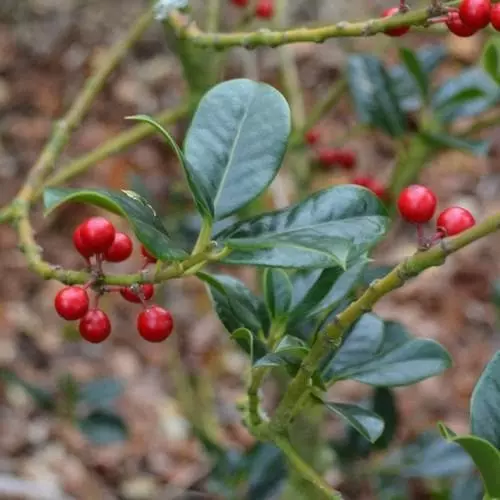 A slow-growing evergreen tree, well known for its spiky leaves. Holly is tough and robust enough to handle the harshest of environments from dark valleys to extreme coastal locations – though it thrives best with the protection of other trees around it. Berries only come on female plants, so plant several cultivars to increase the chances of having fruit. Ilex aquifolium J.C. Van Tol is a self-fertile fruiting variety, suitable where space is at a premium, but also makes an attractive, slow-growing spiky hedge that clips very well and is an ideal evergreen to include in mixed hedges.