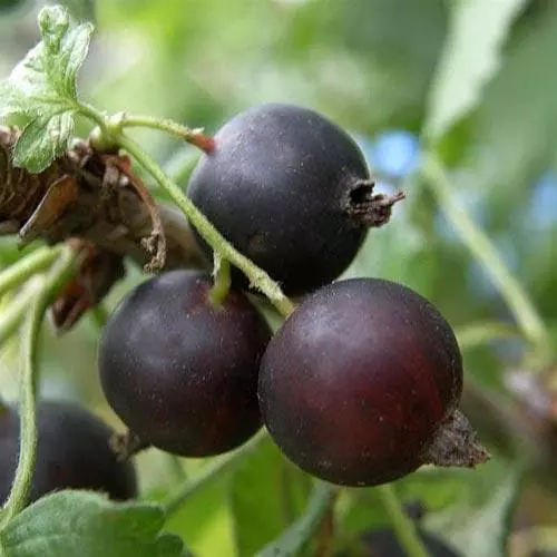 A hybrid between a gooseberry and a blackcurrant, the Jostaberry (pronounced ‘yustaberry’) was developed in Germany early in the last century. It looks like a (thornless!) gooseberry, and is usually grown as a bush, but stooled (planted deeply) like a blackcurrant. Jostaberry is long-lived and very vigorous, but can be pruned to a manageable size or grown as a trained form, e.g. cordon. Heavy cropper. Resistant to the diseases that can plague its parents, but may need frost protection, as it flowers early. The Jostaberry fruit looks like a huge blackcurrant, reddish-black, richly flavoured and rich in Vitamin C.  Pick when fully ripe for eating, or use for jams, pies and juices.