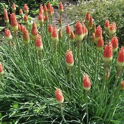 A magnificent red-hot poker grown for its striking ‘poker’ flower-heads, Kniphofia uvaria Royal Castle is a clump-forming, evergreen to semi-evergreen perennial with strap-shaped, deep green leaves. The splendid flower-heads, borne from late June to August on sturdy stems, open brilliant fiery red, slowly fading from the base to yellow, as the long, tubular florets age. Red-hot poker Royal Castle is a good feature plant for sunny beds and borders, and excellent in Mediterranean or gravel plantings, particularly in coastal areas. Drought-hardy once established.
