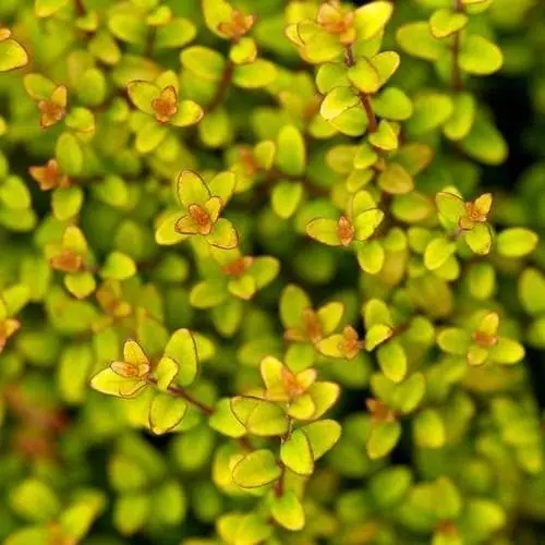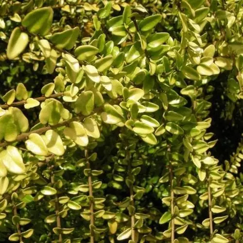 Attractive, tiny yellow leaves crowd the slender, arching shoots of this dense, bushy evergreen. Capable of greater height when trained against a wall.