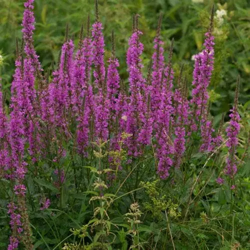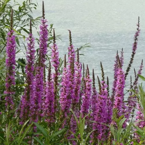 Lythrum salicaria is a stunning plant for a medium to large pond or lake. The tall pink blooms can be seen from some distance, it is free flowering over a long period in summer. Commonly known as Purple loosestrife. Very attractive to bees and native.