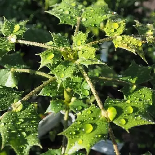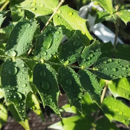An excellent cultivar of this hybrid mahonia, Mahonia x media Charity is a striking, large, evergreen shrub with an upright habit, a very good choice for the winter border. The deep green leaves are heavily divided into prickly, almost holly-like leaflets. In winter, abundant spires of yellow flowers, scented of lily-of-the-valley, appear, lasting into spring, and a valuable nectar source for pollinators at a difficult time of year. These are followed by clusters of non-poisonous blue-black berries, much loved by birds. Often called Oregon grape, Mahonia Charity is a really easy, low-maintenance shrub, needing no pruning.