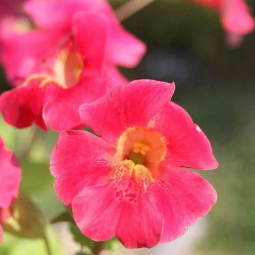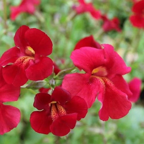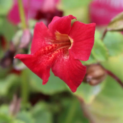 A vividly coloured, marginal pond-plant, Mimulus cupreus Red Emperor is a compact, herbaceous perennial of average vigour. The small, toothed, downy leaves are light green. Beautiful, trumpet-shaped bright scarlet-red flowers are borne June to August, and even into September, and are good for bees. Plant in a mesh basket to ⅓ of the water depth until established. Can also be grown as a marginal plant in reliably wet soil. Cut back flower-stems after flowering to prevent the plant’s energy going into seeds.