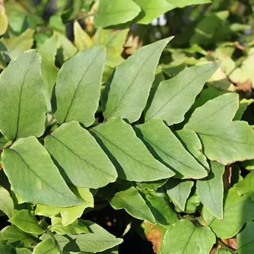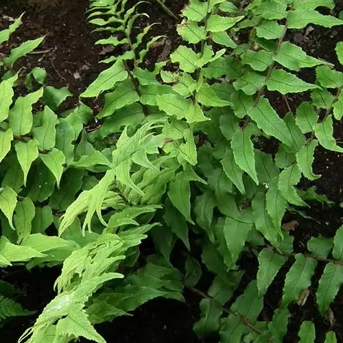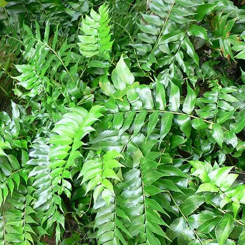 An attractive little fern for shady parts of the garden, Cyrtomium fortunei var. clivicola is a small, perennial, clump-forming, evergreen fern, with arching, divided, bright olive-green fronds. These have broad, papery, rather holly-like leaflets with a yellowish tinge, brighter in deeper shade. A good fern for underplanting trees and shrubs, on shady slopes and in dark, forgotten areas, it will gently spread where it is suited. Dwarf Japanese holly fern is a low maintenance plant, but not for the coldest areas; protect the crown in mild areas with a mulch in winter.