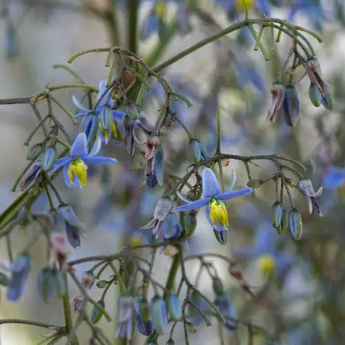 A small grass like perennial from SE Australia, Dianella caerulea Cassa Blue is a rhizomatous, evergreen perennial with an upright, tufted, compact habit. The glaucous-blue leaves are broadly lance-shaped, with a ‘keel’ and rather rough edges. Delicate, purplish-blue flowers in loose panicles are followed by round, shiny, blue berries. Dianella Cassa Blue is half-hardy, so will survive in the garden in mild areas, except in unusually severe winters; in colder areas, it can be grown in a pot and taken in for the winter. Good in mild, woodland gardens. Easily propagated by division.