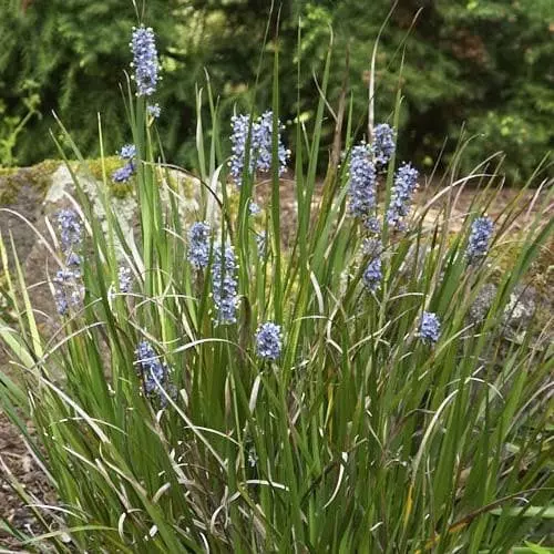 Libertia caerulescens is an unusual evergreen perennial with pale green, upright, linear foliage and clusters of numerous pale blue flowers in late spring or early summer that are followed by glossy, light brown seed heads.